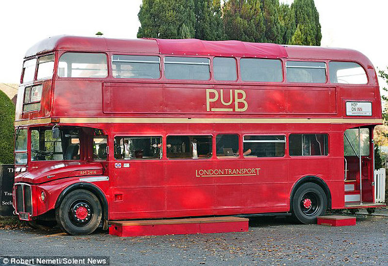 41-летний предприниматель Колин Флиттер за 18 500 фунтов купил на аукционе eBay классический двухэтажный автобус Routemaster 1966-го года выпуска и превратил его в паб под названием Hop On Inn, что переводится как «мигрирующий трактир».